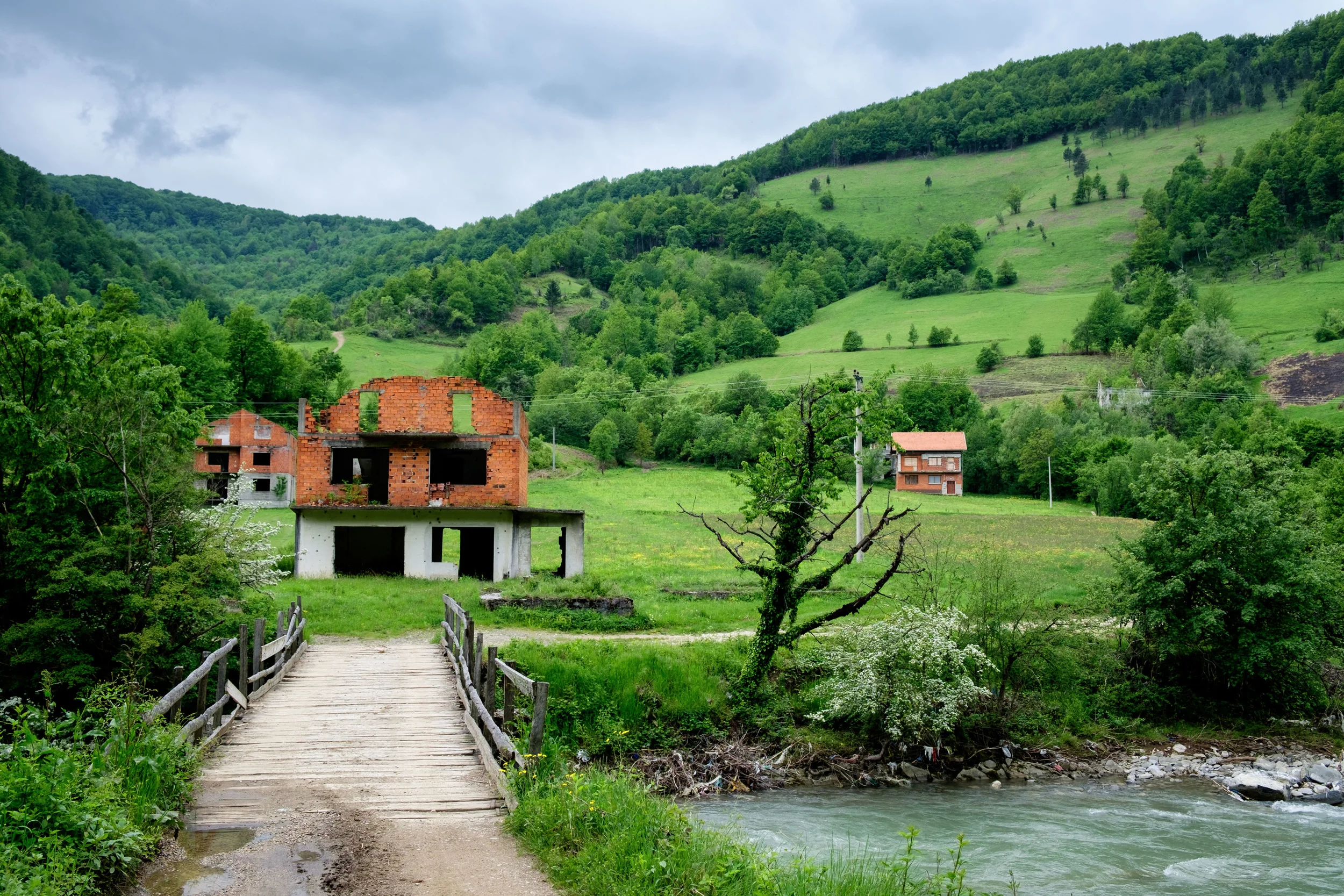 Sur la route, d'autres maisons abandonnées.